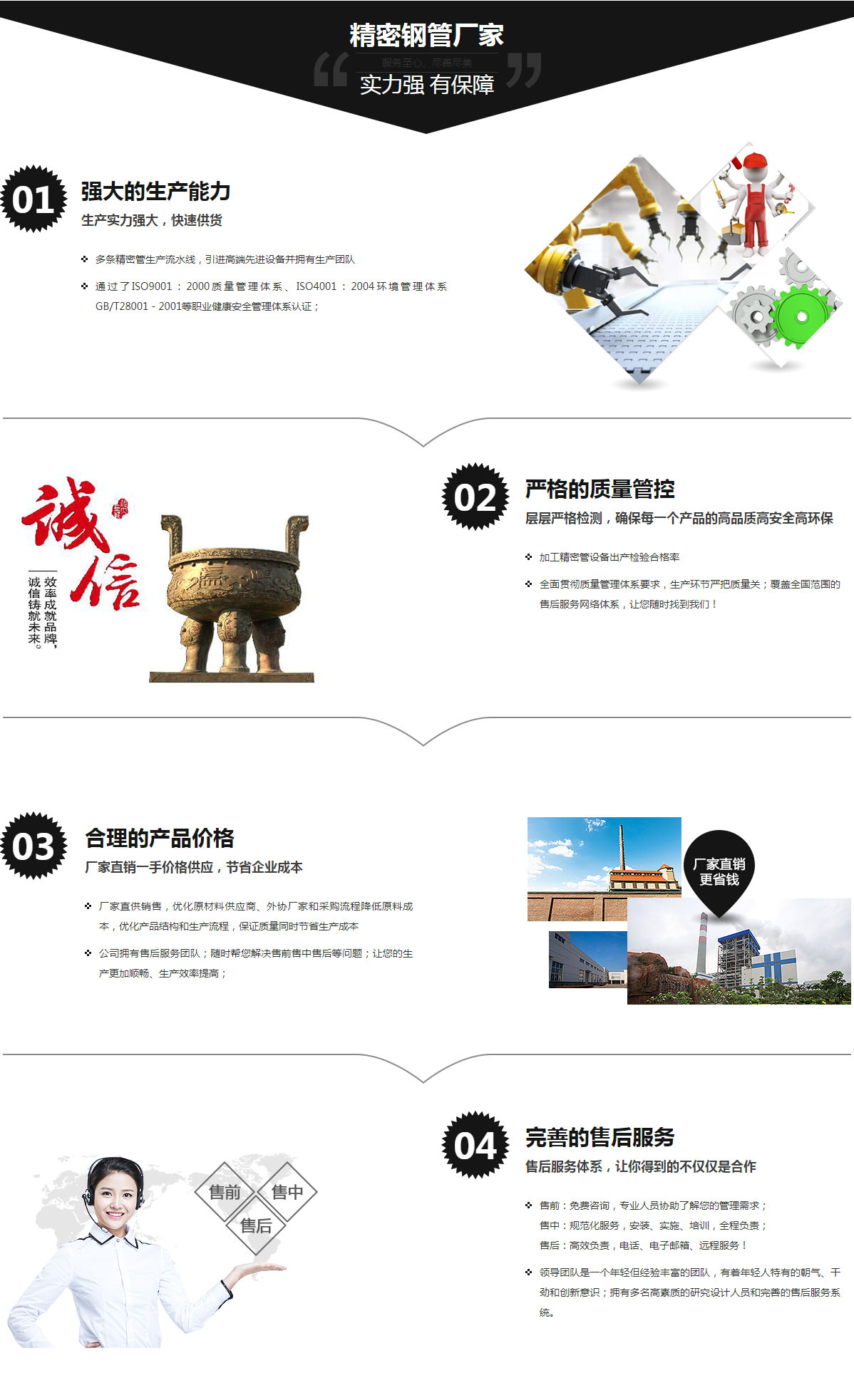 聊城德福管有限公司公司有大量精密鋼管、毛細(xì)鋼管、高精度冷拔鋼管、精密異型鋼管現(xiàn)貨,將以?xún)?yōu)惠的價(jià)格,批零兼營(yíng)的方式,為您提供快捷優(yōu)質(zhì)的服務(wù),歡迎新老客戶(hù)前來(lái)洽談、電議。精密管切削余量少 為達(dá)到圖紙所要求的精度,采用精密加工是所有加工方法中去除余量最少的一種加工方法。在珩磨加工中,珩磨工具是以工件作為導(dǎo)向來(lái)切除工件多余的余量而達(dá)到工件所需的精度。珩磨時(shí),珩磨工具先珩工件中需去余量最大的地方,然后逐漸珩至需去除余量最少的地方。